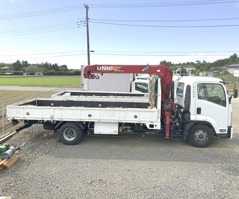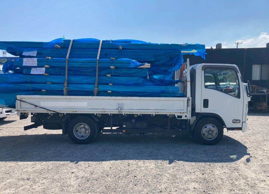 4t平ボディよりもやや小回りが利く一方で、十分な積載量を持ち合わせているため、一般的な建築現場への資材運搬において使いやすい車両です。